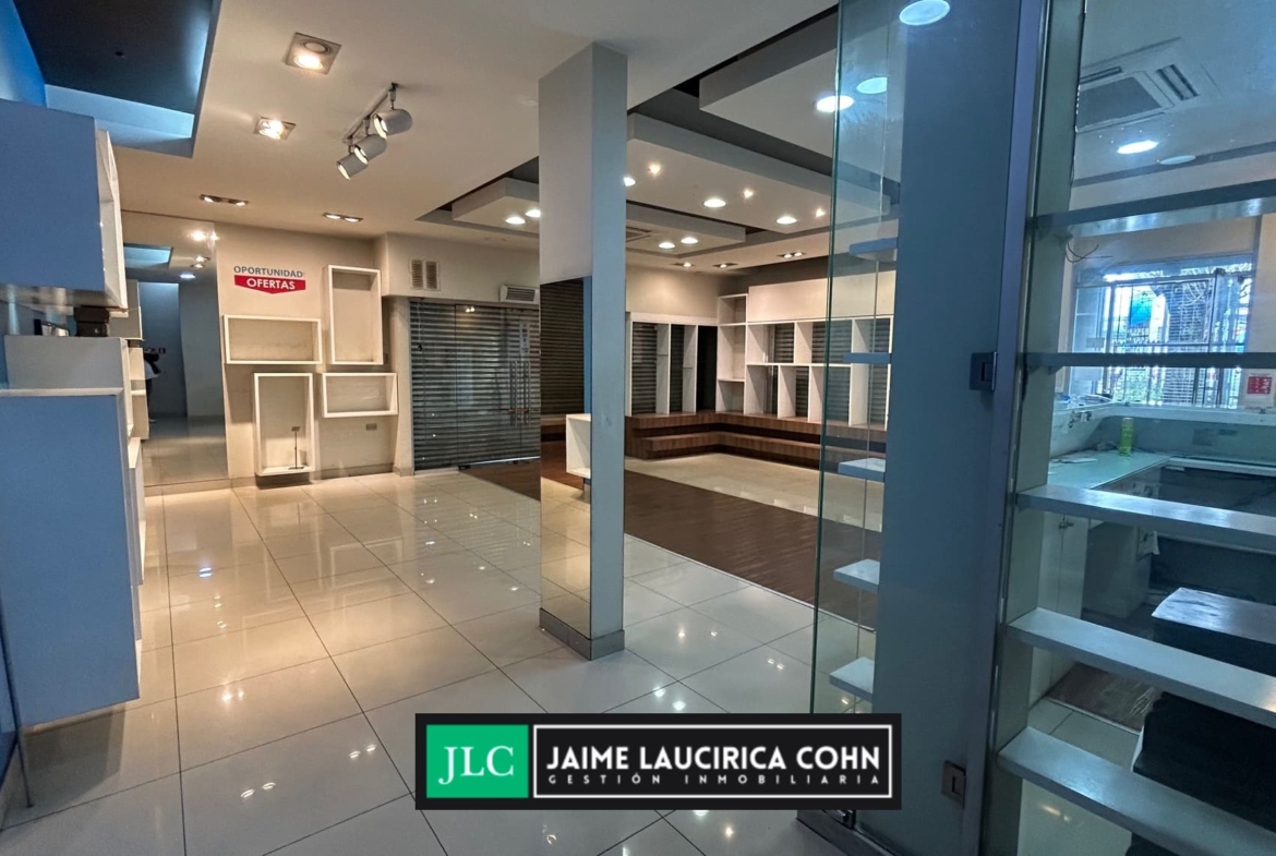 Estupendo local comercial con excelente vitrina, en vía de alto tránsito (Los Carrera altura de 800) equipada con cortinas de seguridad, salón de exhibición y ventas, más galpón de aprox. 300 m2, excelente construcción en muy buen estado de conservación. Estacionamiento para 6 vehículos.