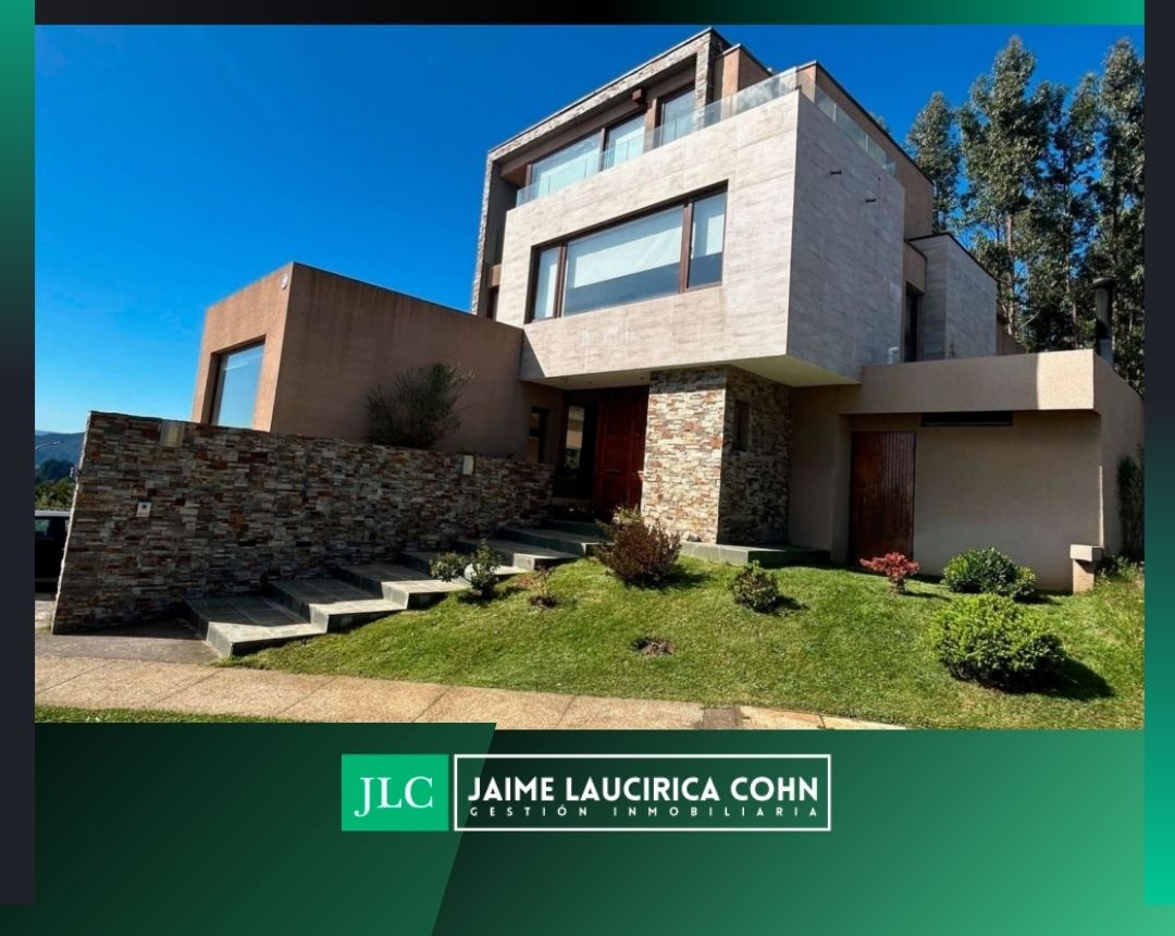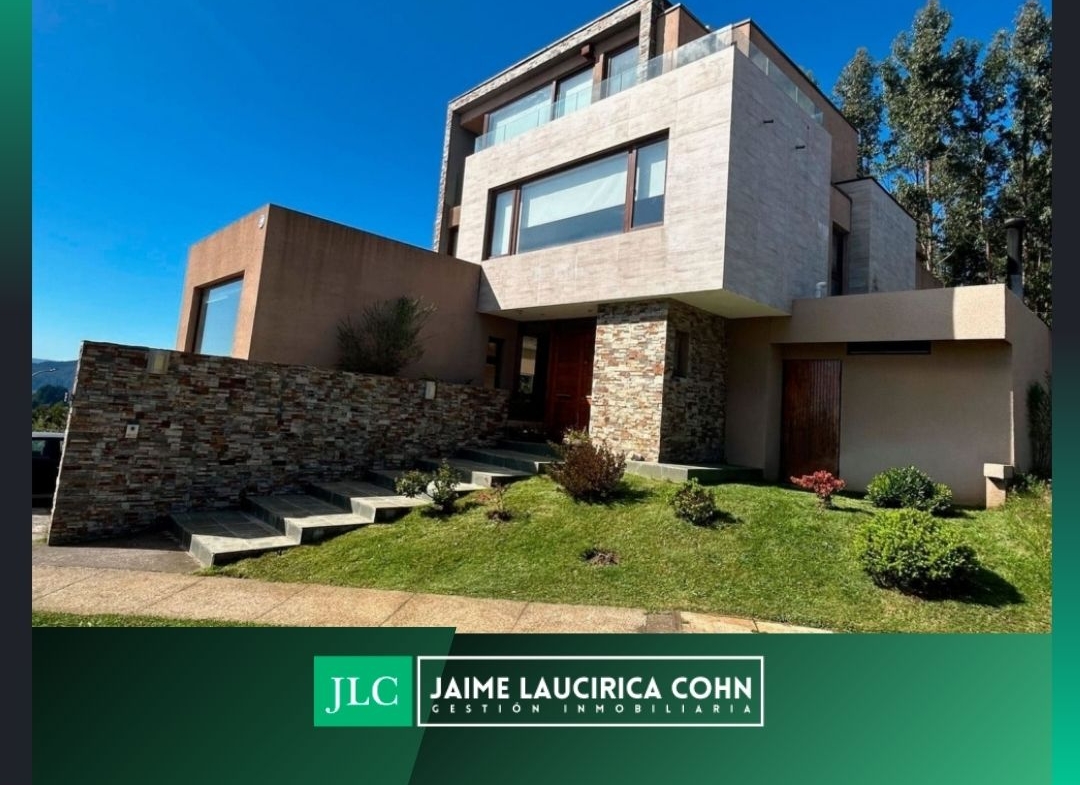 Estupenda y amplia casa seminueva, en excelente estado. Estructura y muros de hormigón armado, en Condominio Alto Lafquén, subida el Venado, San Pedro de la Paz. Estilo mediterráneo, finas terminaciones y con logrado diseño del arquitecto Mauricio Camus. Sólida construcción de aprox. 386 m2 construidos, emplazada en aprox. 626 m2 de terreno. 5 dormitorios, 6 baños, con increíbles vistas panorámicas a Concepción, laguna, río Bío Bío, desembocadura y Océano Pacífico. Muy asoleada, en cotizado y seguro sector de primer nivel y seguridad las 24 horas.