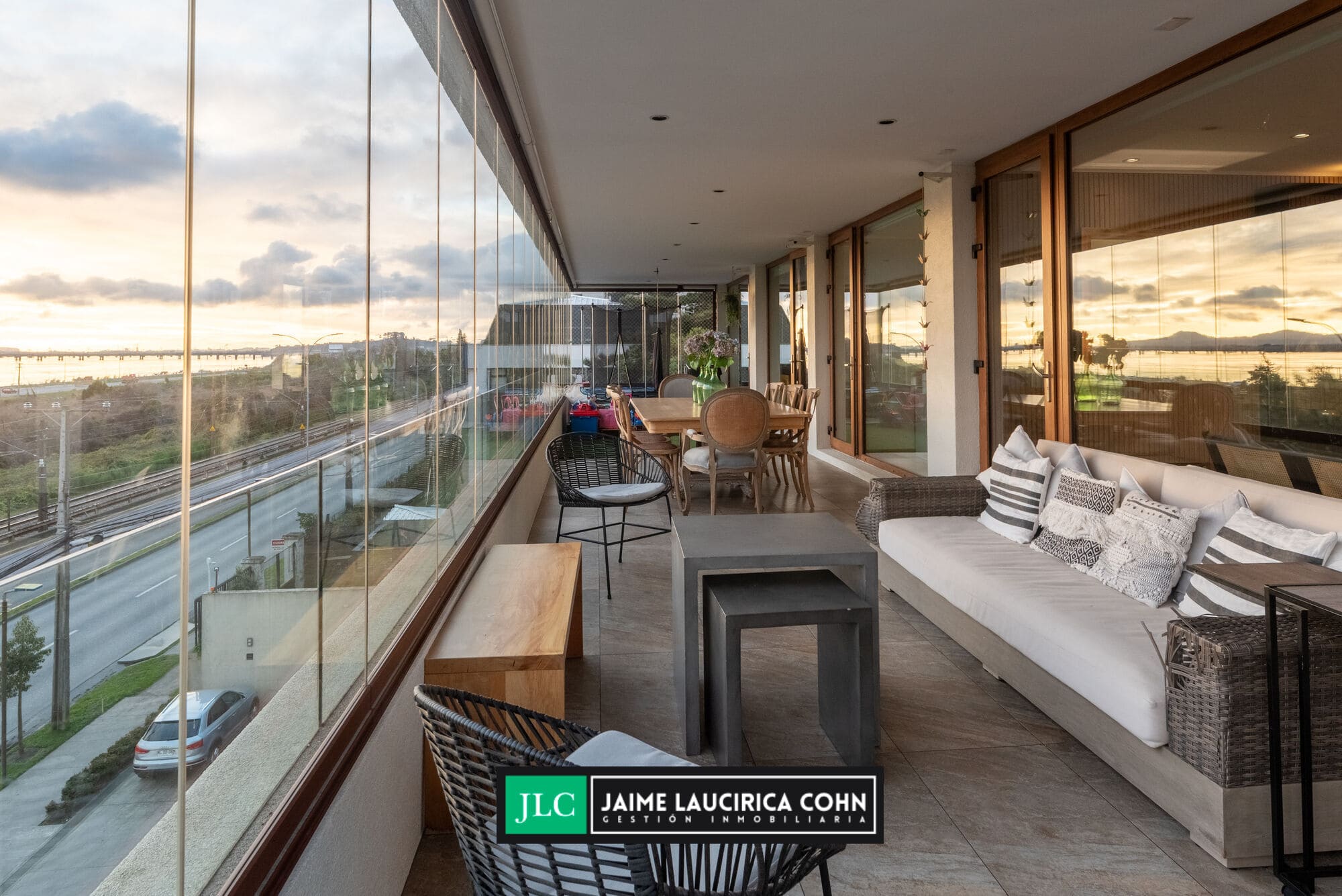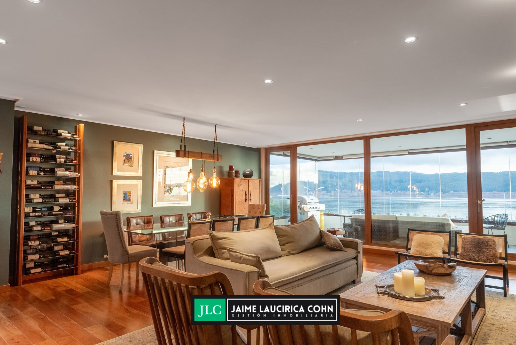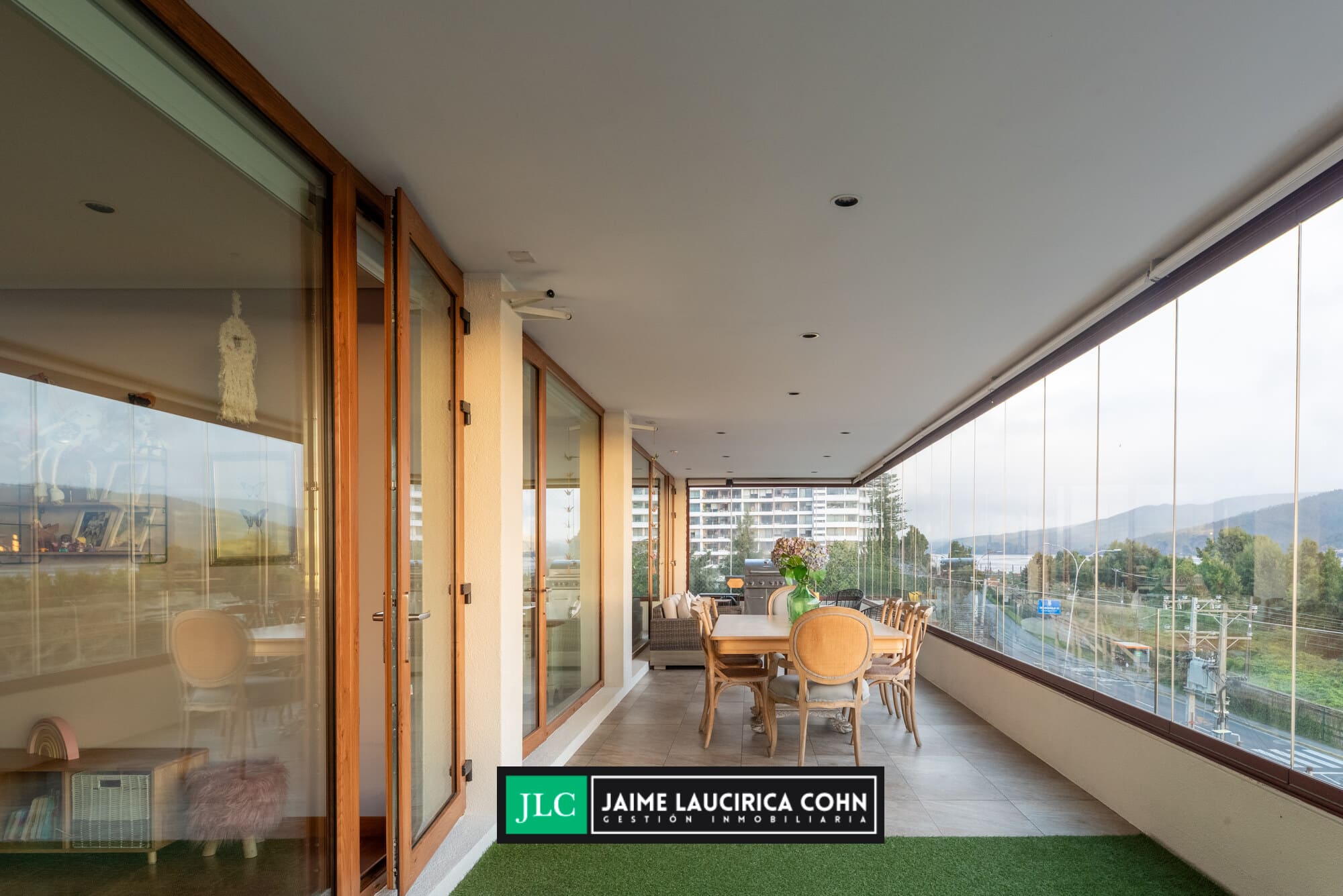 Recibidor privado, hall de acceso, amplio living comedor, con salida a terraza de 60 mts2, cerrada con cristales pegables, insuperable vista y cortinas automáticas.