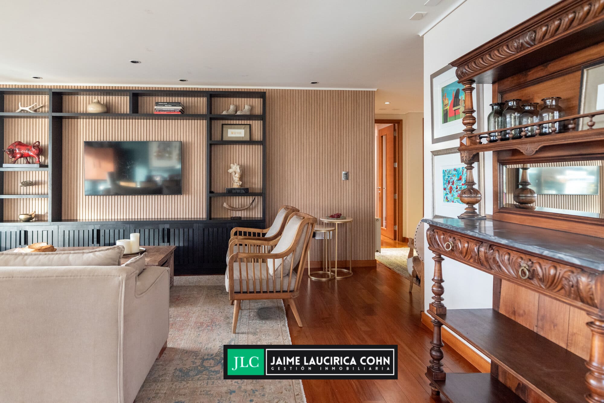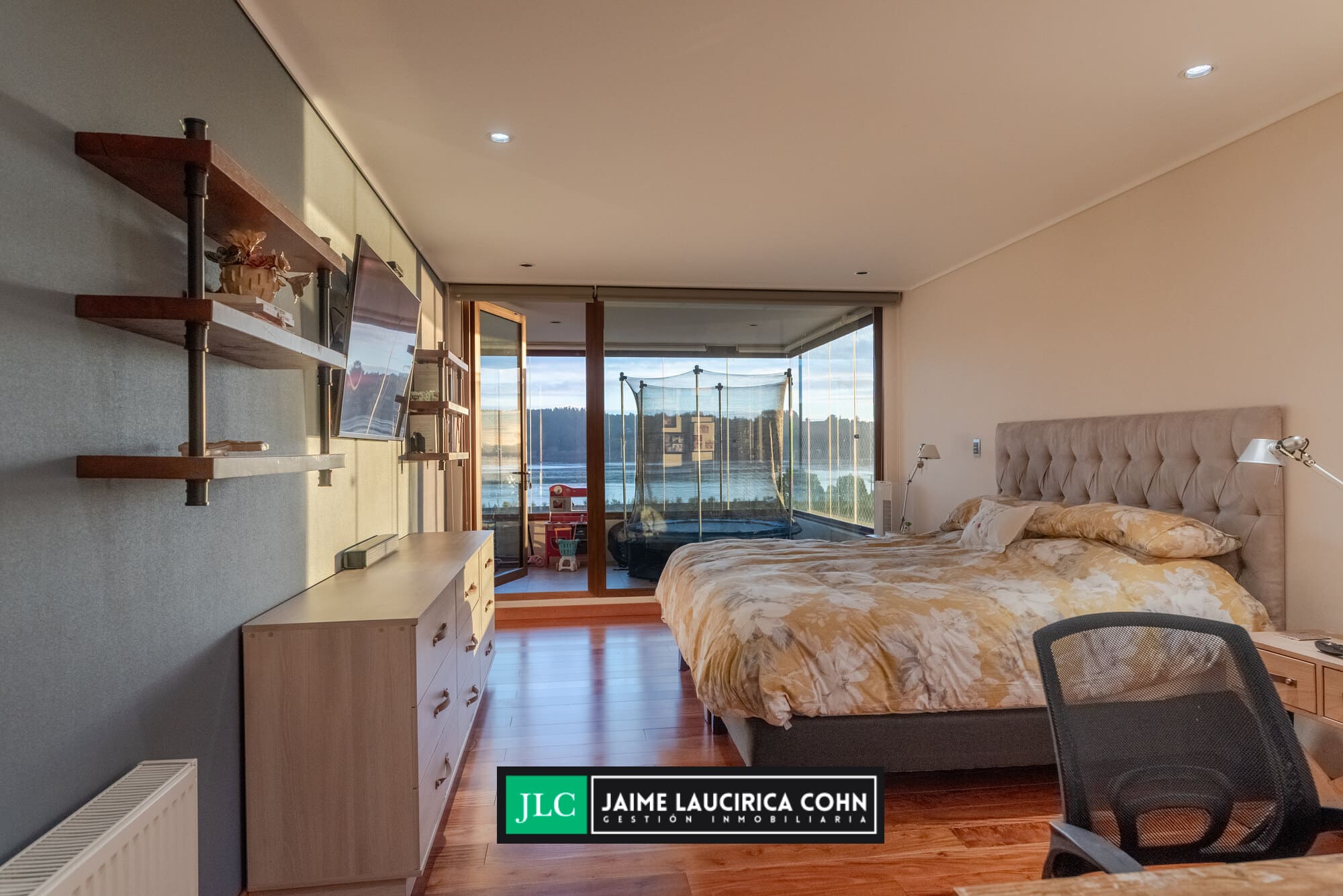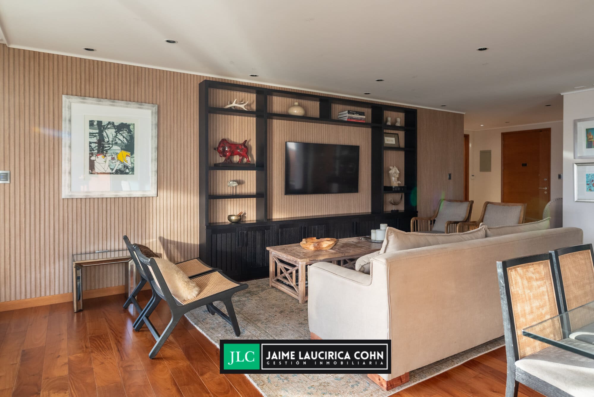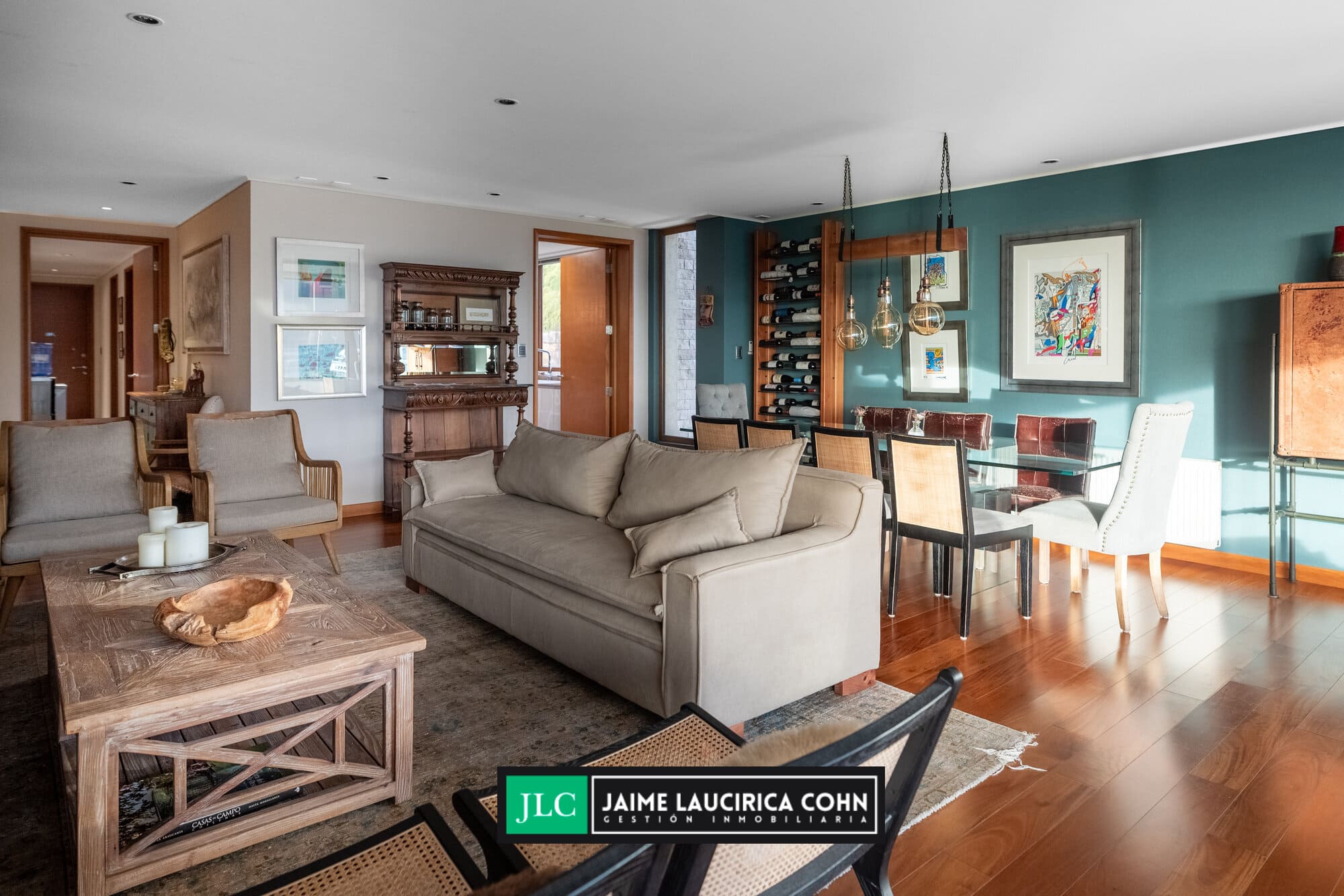 Recibidor privado, hall de acceso, amplio living comedor, con salida a terraza de 60 mts2, cerrada con cristales pegables, insuperable vista y cortinas automáticas.