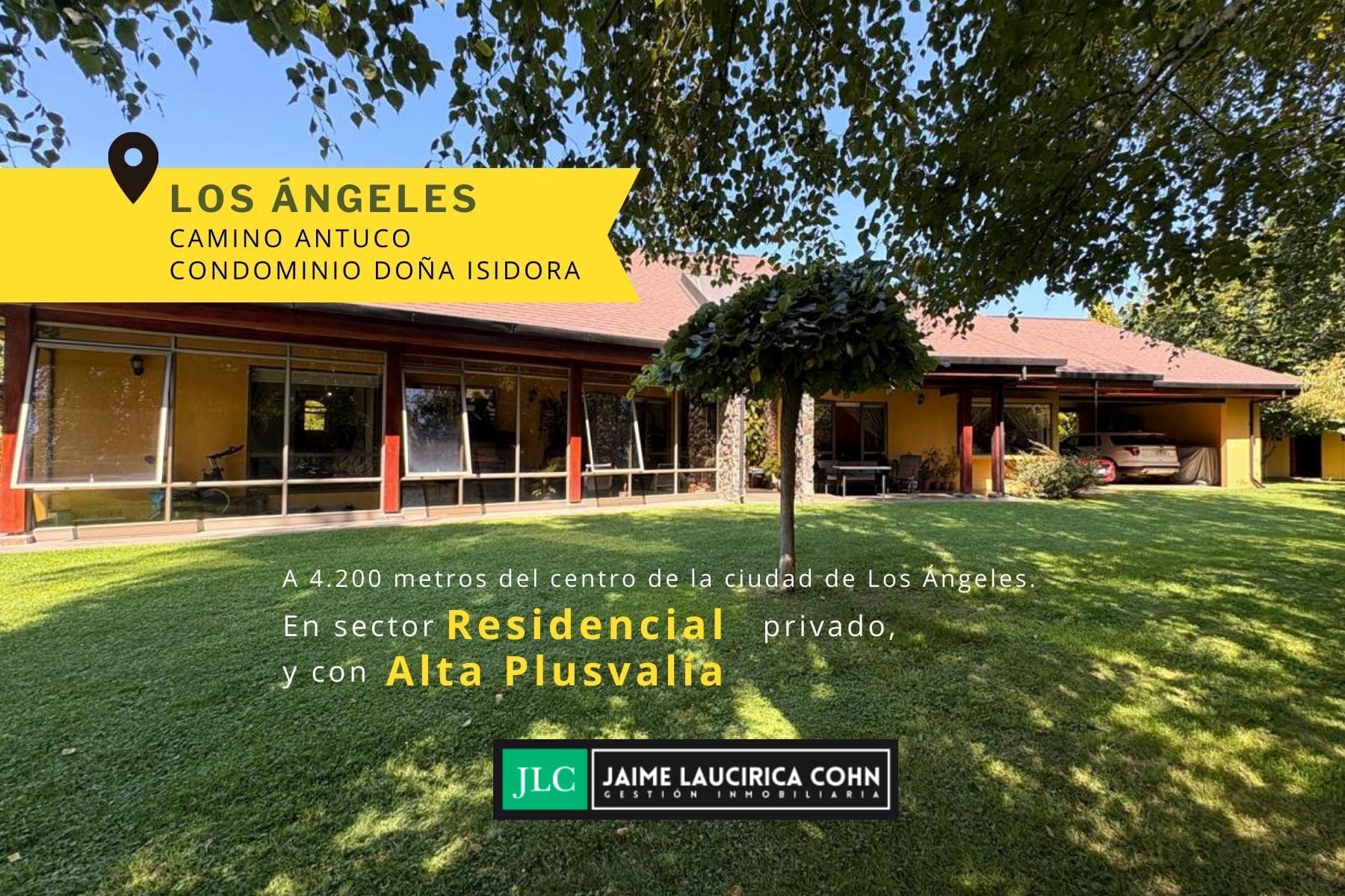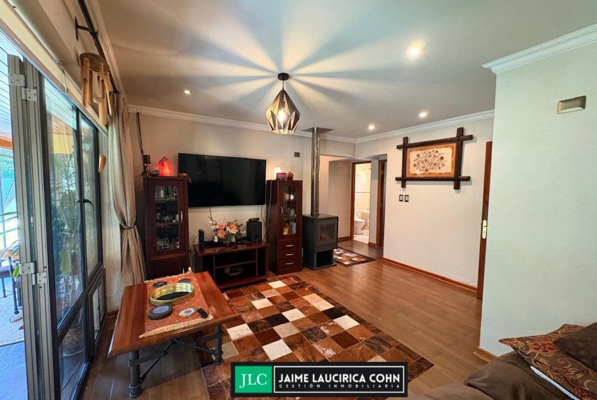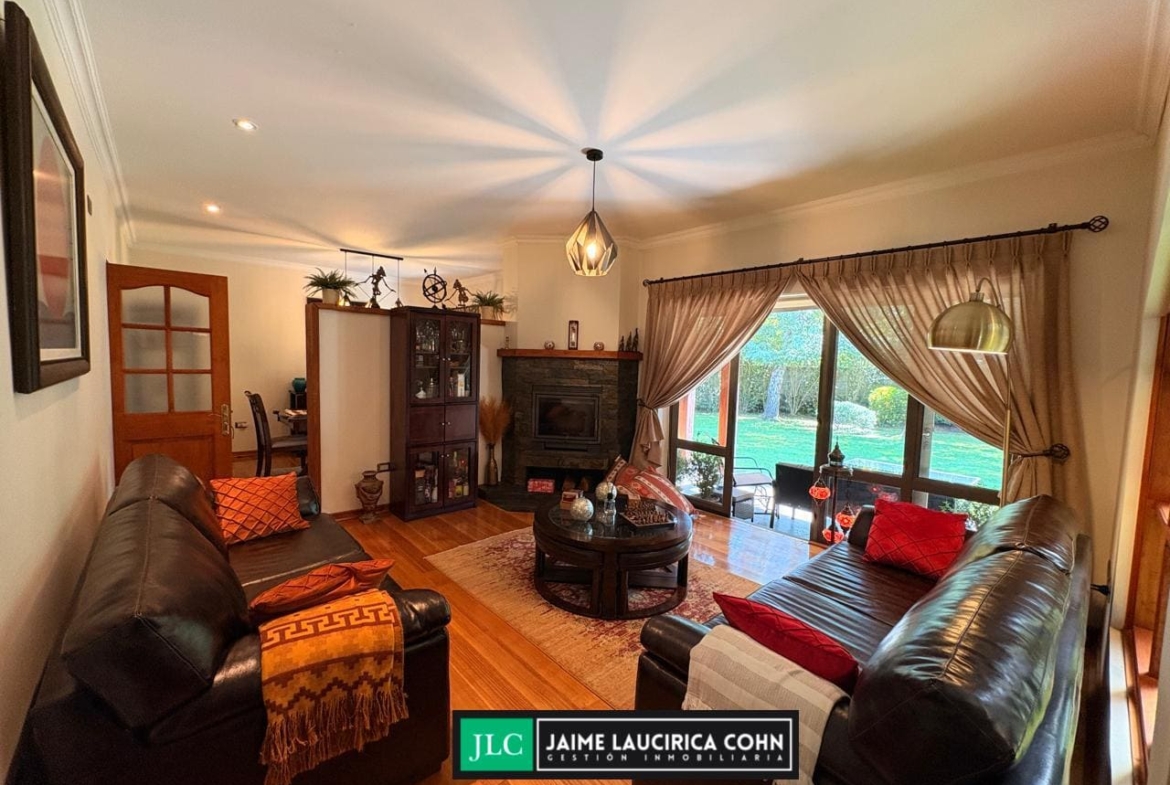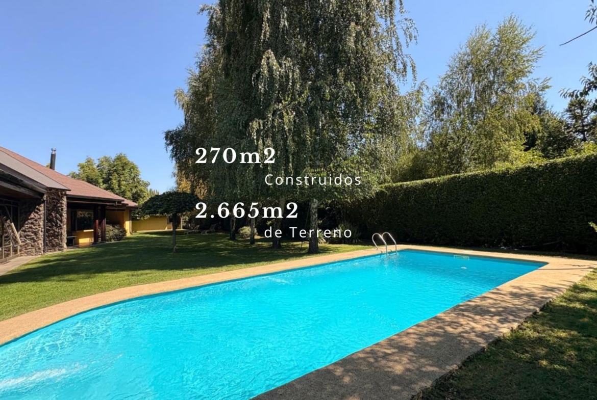 Amplia, acogedora y sólida propiedad en sector residencial privado camino Antuco, en el Condominio Doña Isidora, excelente conectividad, a solo 4,2 km del centro de la ciudad. Tiene 270m2 construidos en 2.665m2 de espectacular terreno, sólida construcción en un solo nivel, cuenta con 3 dormitorios, 3 baños, sala de estar, piscina, bodegas exteriores, canil, leñera, terrazas techadas y una cerrada.