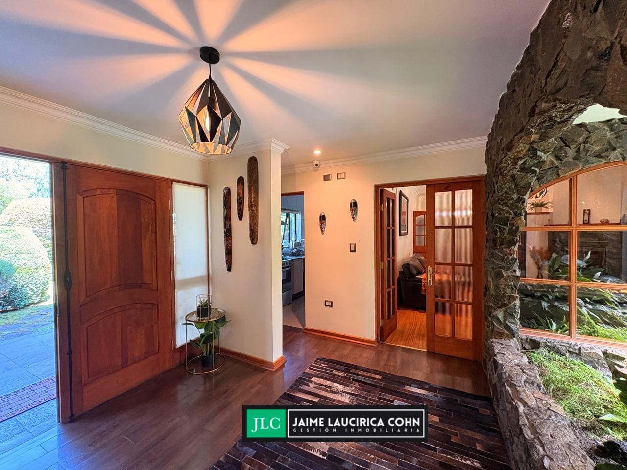 Excelentes terminaciones, pisos de porcelanato en cocina, baños, loggia, hall y sala de estar, pisos de madera nativa en living, comedor y dormitorios, piso de piedra natural en terrazas y perímetros de la casa. Hermosa arquitectura con muros interiores y exteriores en piedra, Combustión lenta en cocina y sala de estar.